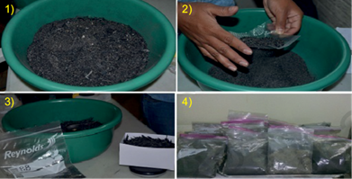 Finally, the materials were removed from the type II water and drained onto the absorbent material. The clean and dry material was suitably placed in duly labeled, airtight (Ziploc) bags or containers with a lid.
