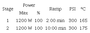 The power was adjusted based on the number of beakers used: 1-3 (300 W), 4-6 (600 W) and 6-12 (1200 w) (Table I).