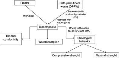 Furthermore, gypsum deposits outcrop in thick layers in southern Tunisia and many plaster manufactures are installed in this region. The produced plaster is mainly used for decorative purposes, although it has interesting thermal properties (Mansour et al. 2013). In the present study, the effect of date palm fibers waste (DPFW) as reinforcing agent on the mechanical properties of plaster-based composite was investigated. The results of an alkaline treatment and drying temperature have also been studied.