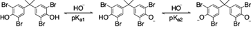 TBBPA has two ionizable aromatic hydroxyl groups (pKa1 = 7.5 and pKa2 = 8.5) (Bergman et al. 2012). When TBBPA is in contact with cement shell, which is a well-known strong base (Birchall et al. 1978), it reacts immediately to form the anionic species of TBBPA (Fig. 1), thus increasing leaching to the aqueous phase. The same behavior applies to BPA, which is also a phenol.