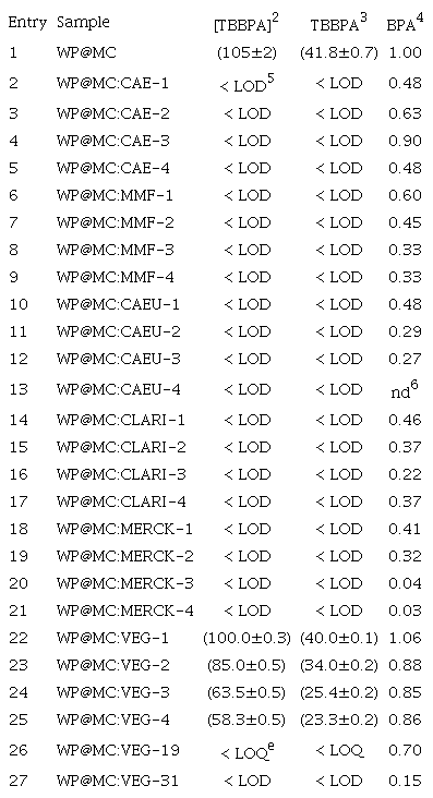 Pore water from the cured process of the RPAs was obtained with the following procedure: immersion of RPA containing 250 g of WP in 500 mL of milli-Q water for 14 days at room temperature (25 ºC) without stirring. Then the RPA (solid) was filtered and the solution was acidified with concentrate hydrochloric acid at pH = 2. The aqueous phase was extracted with n-hexane (4 × 125 mL), the organic phase was dried with sodium sulphate, and the solvent was evaporated in vacuum. Standards were added to the organic phase and it was dissolved in ethyl acetate (10 mL); the organic compounds (TBBPA and BPA) were quantified by GC-FID using an internal standard method.