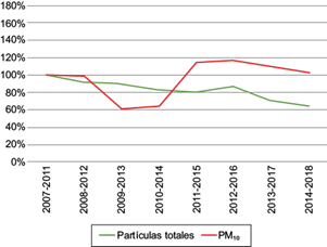 Las partículas sólidas con diámetro de 10 µm (PM10) que pueden tener origen en este tipo de industrias (Pérez-Vidal et al. 2010), contienen algún componente dañino que causa malestares como irritación de garganta y ojos, e incluos enfermedades cardiovasculares, asmáticas o respiratorias crónicas (HEI 2002, Pérez-Vidal et al. 2010). Esto se debe principalmente a su tamaño reducido (Gupta et al. 2012, Sana Mehraj et al. 2013, Rovira et al. 2018), el cual facilita la penetración al tórax por inhalación e influye en la aparición de células cancerígenas, teratogénicas y mutagénicas (Arden et al. 1995, Pérez-Vidal et al. 2010). Diversos estudios han demostrado que los parámetros meteorológicos como precipitación y viento no sólo pueden perjudicar la flora y la fauna (HEI 2000, Pérez-Vidal et al. 2010), sino que además la estacionalidad es otra constante que debe tenerse en cuenta, ya que, por ejemplo, las emisiones son mayores en diciembre y con condiciones anticiclónicas y menores en verano o en la época de lluvia (Pey et al. 2010, Rovira et al. 2018). Por ello la identificación y cuantificación de las fuentes de contaminación por partículas sólidas se han convertido en un tema cada vez más trascendente (Kong et al. 2011, Gupta et al. 2012).