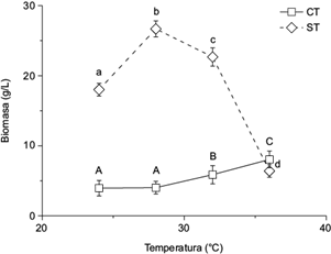 Para el caso de S. maltophilia, Vázquez et al. (2005) obtuvieron valores bajos de biomasa (2.4 g/L) al inocular en caldo nutritivo a 24 ºC y 240 rpm, en tanto que Oves et al. (2013) y Tebyanian et al. (2013) obtuvieron valores de 4 a 6 g/L al controlar diferentes parámetros de pH (2-12), temperatura (30-37 ºC) y agitación (120-180 rpm).