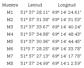 Para la realización de los estudios propuestos se seleccionaron ocho puntos de muestreo en LMG según lo mostrado en la figura 1 y el cuadro I. En las ocho estaciones de muestreo se recolectaron muestras de agua y sedimento durante las cuatro estaciones del año. Las muestras se recolectaron a una distancia de 3-4 m de la línea de costa en botellas color ámbar de un litro de capacidad para los análisis físicos y químicos, así como de hidrocarburos y metales pesados, y en un recipiente estéril de 250 mL para los estudios microbiológicos. Aproximadamente 1 kg de sedimento se tomó en cada punto de muestreo y se dejó escurrir para la eliminación del agua libre; finalmente se almacenó en bandejas de plástico nuevas. Las muestras tomadas en una misma estación fueron analizadas de forma individual y los resultados expresados representan los promedios obtenidos. Todas las muestras se mantuvieron refrigeradas hasta su análisis.