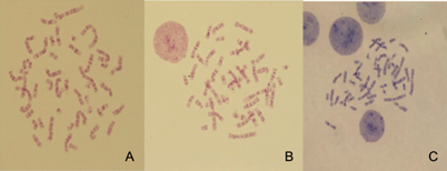 A las 70 h de iniciado el cultivo se agregaron 0.2 mL de colchicina al 0.05 % (Sigma). Durante todo este proceso los cultivos se incubaron a 37 ºC.
