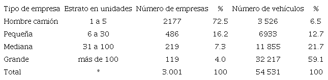 Para esta investigación se consideraron cuatro tipos de estructura empresarial: hombre camión, empresa pequeña, empresa mediana y empresa grande.