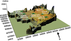 el flujo es neguentrópico, lo que permite que el sistema se mantenga fuera del equilibrio, favoreciendo las condiciones desmedradas de ventilación de EMO y propiciando, tal como se indicó, que un porcentaje del flujo entrópico de contaminantes pueda difundirse hacia la parte baja del valle donde se ubica Pudahuel.
