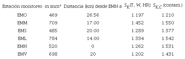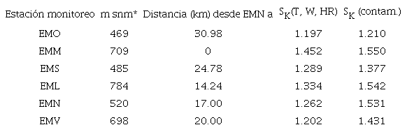 Para la muestra localizada y referida a los datos de las seis estaciones de monitoreo para los contaminantes bajo estudio, este valor se puede interpretar como (i) un sistema con escasa presencia de contaminantes, condición de medio prístino, o (ii) un sistema Tierra-atmósfera troposférico que se sostiene en procesos con características irreversibles (SK,vm ≠ 0) (Prigogine 1955).