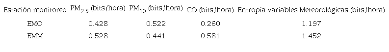 Es decir, ambos casos presentan caoticidad con baja predictibilidad. Sin embargo, empíricamente la estación EMM exhibe niveles bajos de concentración de los contaminantes estudiados (generados por procesos mecánicos y fotoquímicos) en comparación con estación EMO. Según los resultados de este estudio al comparar, por ejemplo, los regímenes de vientos de EMO con EMM, en esta última localidad los vientos son de menor magnitud, pero más caóticos y por lo mismo de mayor entropía. Lo que se traduce en una mayor movilidad en la traslación de contaminantes