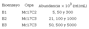 En el cuadro II se aprecia que hubo mortalidad significativa (˃ 50 %) de organismos de Artemia alimentados con cultivos de Microcystis mucho menos abundantes que los usados en otros estudios. Este resultado permite inferir la potencial toxigenicidad de las cepas Mc17C2 y Mc17C3, ya que existe relación entre el aumento de la mortalidad de Artemia y el incremento proporcional en la concentración de hepatotoxinas y neurotoxinas (Kiviranta et al. 1991, Campbell et al. 1994).