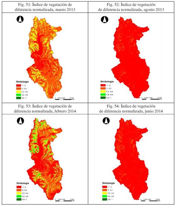 A pesar de la exactitud del índice NDVI para el análisis sugerido es preciso constatar en la validación en terreno de forma visual y real las clasificaciones identificadas en las imágenes satelitales (Boone et al. 2007), correspondiendo a dos tipos: la vegetación vigorosa recibe menos reflexión por parte del suelo al estar concentrada y ser absorbida por la clorofila existente entre estas zonas, lo contrario ocurre con la vegetación dispersa.