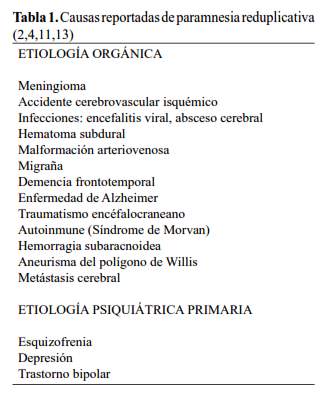 En los pacientes con PR de etiología orgánica, este fenómeno es usualmente el único síntoma psicopatológico. Por lo tanto, si la PR se presenta asociada a otros síntomas psicóticos o cambios previos del comportamiento, esto sugiere que la etiología primaria sería psiquiátrica. Los pacientes psicóticos usualmente presentan síntomas paranoides, por lo que, al ser confrontados, se mostrarán suspicaces y defenderán con beligerancia sus creencias –como en el caso de nuestro paciente-, en cambio los pacientes orgánicos suelen ser asequibles, y aunque sostendrán sus creencias como ciertas, reaccionarán más bien con desconcierto al ser cuestionados sobre la imposibilidad de las mismas (2,3,4).