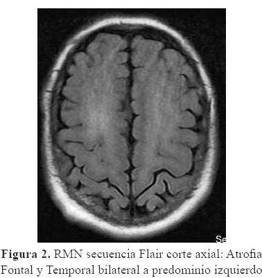 El paciente previo a las manifestaciones motoras, presentó alteraciones conductuales marcadas con desinhibición y conducta social inapropiada y la presencia de signos de liberación frontal lo cual sugirió que previo al cuadro motor el paciente presentó un cuadro compatible con demencia frontotemporal. Aunque no se llegó a realizar la evaluación neuropsicológica formal por su estado, los datos imagenológicos y de anamnesis, en los que destacaban sus manifestaciones iniciales caracterizadas por trastorno conductual con signos y síntomas de liberación frontal sustentaban que el paciente cumplía los criterios diagnósticos propuestos por Rascovsky et al., para DFT variante conductual probable (5).