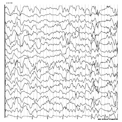 Diagnóstico: El análisis genético para la lipofuscinosis ceroidea neuronal está indicado en pacientes jóvenes con mioclonías, epilepsia y disminución de audición. Entre los hallazgos en la biopsia se encuentra lipopigmentación autofluorescente anormal de cuerpos de inclusión lisosomal depositados en cerebro, plexo mientérico, músculo y piel. Los depósitos lisosomales vistos en las biopsias varían según el tipo de variante de la enfermedad. También apunta al diagnóstico el hallazgo de un grado variable de atrofia cerebral en la resonancia magnética con cada variable teniendo una región preferente de atrofia (17). El electroencefalograma muestra grados variables de actividad de fondo enlentecida difusamente en el 95% de casos, descargas epileptiformes generalizadas en el 80% (Figura 1) (16). El 25% de pacientes tienen potenciales evocados somatosensoriales gigantes. Hay neuropatía axonal en el 30% de pacientes (1).