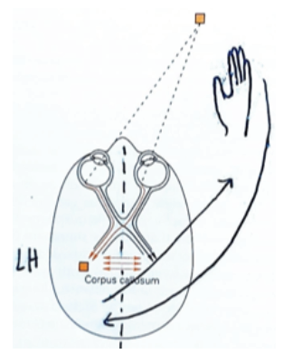 Sin embargo, si sabemos que cada hemisferio cerebral “ve” exclusivamente el lado opuesto o contralateral (debido a la decusacion quiasmática), y que el procesamiento motor-sensitivo se realiza en conjunto debido a las áreas de asociación cortical, entonces es comprensible que ese hemisferio, y no el otro, sea el que ejerza el control motor y sensitivo directo (ahorro energético) de lo que él “ve” (figura 1).