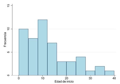 De los 966 estudios de la búsqueda global de las bases de datos utilizadas, únicamente 19 reportes de caso y series de caso fueron seleccionados. Un total de 51 casos con diagnóstico clínico de MELAS, 12 adultos y 39 niños, fueron descritos en las publicaciones incluidas; de estos, únicamente 42 (82%) describen el estudio genético: 40 corresponden a la variante m.3243A>G, 1 caso a la variante 13513 G>A y 1 caso a la variante 3271T>C. La edad media de inicio de la enfermedad es 12 ± 9,7años, con un predominio en el sexo femenino (gráfico 1). Las manifestaciones neurológicas más frecuentes fueron los episodios de stroke like y epilepsia. Los episodios stroke like se presentaron en 66% (8/12) de adultos y 79 % (31/39) en niños. La epilepsia se presentó en 42 % de adultos (5/12) y 77% en niños (30/39) En neuroimágenes se evidenció principalmente lesiones isquémicas tipo stroke like y calcificación de núcleos basales. Lactacidemia y una biopsia positiva para fibras rojo-rasgadas fueron descritas en aproximadamente el 50 % de casos. Estas características se resumen en la tabla 1.