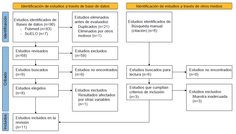Los datos para esta revisión sistemática se obtuvieron siguiendo las guías para revisiones sistemáticas y meta-análisis PRISMA (11).
