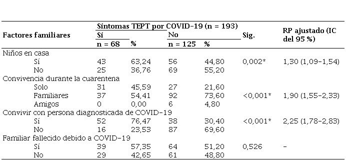 Factores familiares asociados a síntomas TEPT postpandemia COVID-19 en estudiantes de Medicina