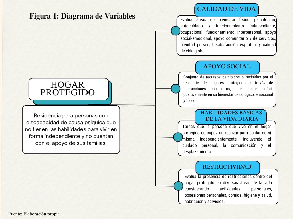 Así, aún existen escasos estudios sobre la implementación de los hogares protegidos dirigidos a personas con discapacidad psíquica sin apoyo social en el país (5, 6, 15), por lo que el objetivo de esta investigación es evaluar la calidad de vida, apoyo social, habilidades de la vida diaria y nivel de restricciones, así como las correlaciones entre ellas en residentes de hogares protegidos de Perú.