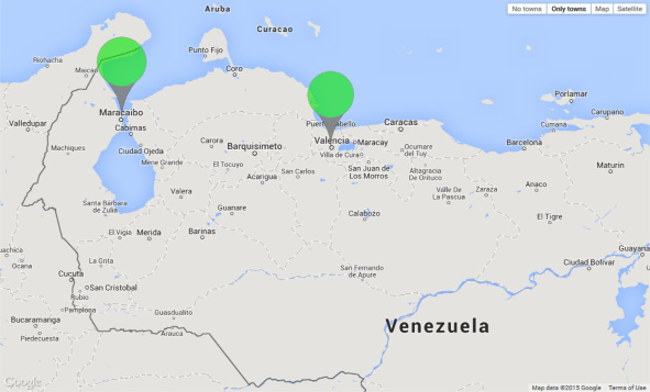 Ubicación de los hospitales públicos donde se obtuvieron los aislados de K. pneumoniae productores de carbapenemasas tipo KPC. La Ciudad Hospitalaria “Dr. Enrique Tejera” está localizada en la ciudad de Valencia, estado Carabobo; mientras que el “Servicio Autónomo Hospital Universitario de Maracaibo” se encuentra en la ciudad de Maracaibo, estado Zulia.