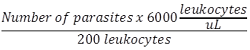 All blood samples were examined through optical microscopy by TTS stained with Giemsa to look for any hemoparasites, particularly malaria and circulating trypano somes. For malaria, the parasite load was calculated as follows (14):