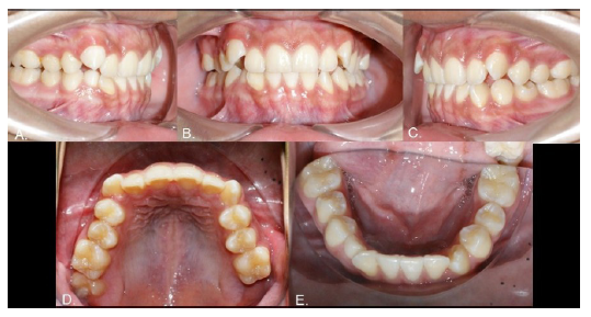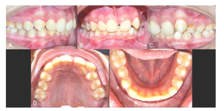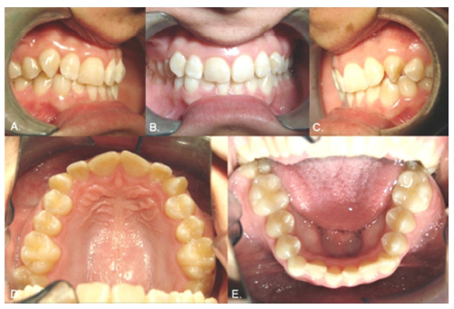 Patients with transmigrated teeth can also exhibit other associated anomalies, such as supernumerary teeth, agenesis, and impacted teeth (5,7,8). A genetic origin may explain transmigration (5,9), although other causes are known: blockage of eruption routes by supernumeraries or odontomas (2,10); cysts (2,8); anomalies of the lateral incisors (2); and problems of space (premature loss of deciduous teeth, retention of the deciduous canine, crowding or spacing) and abnormal emerging patterns such as ectopic eruption (8).