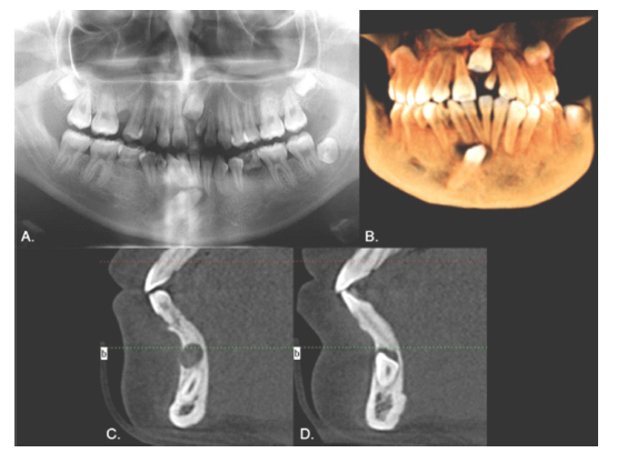 Options for treating this dental anomaly include surgical removal, autotransplants, and surgical exposure with orthodontic traction (1,2,13). In many cases, no treatment is applied and the condition is simply monitored with periodic radiographs; however, as with any impacted tooth, there is a risk of cyst development or damage to neighboring structures, such as the roots of adjacent teeth (7,11).