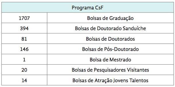 A criação pelo Governo Brasileiro do Programa Ciência sem Fronteiras - CsF17, em 2011, gera uma mudança no cenário das mobilidades no exterior, tanto quantitativa como geográfica, além do grande aumento no total das mobilidades realizadas o programa