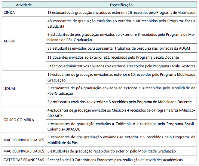 Esse crescimento deve-se principalmente a ações realizadas pela VRERI no sentido de firmar novos acordos para intercâmbio de estudantes, ampliar a participação da universidade em programas de mobilidade em redes acadêmicas e criar programas específicos para atrair estudantes estrangeiros. Seguindo a tendência mundial de que as universidades tenham, em seu quadro discente, cada vez mais estudantes estrangeiros, promovendo a pluralidade cultural em seus campi e consequentemente o contato internacional entre os estudantes, no conceito de que a internacionalização não é feita somente enviando estudantes ao exterior, mas promovendo a vivência internacional através da convivência com estrangeiros nos campi da universidade.