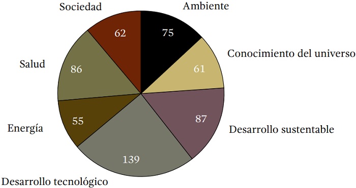 En la distribución de las cátedras por institución se advierten el peso de algunas instituciones, situación asociada a sus fortalezas en el campo de la investigación. A la cabeza se ubica la UNAM, con 51 cátedras asignadas (30 para proyectos grupales y 21 individuales). En las cátedras participan ocho centros de investigación, once institutos y dos facultades. La mayoría tiene una o dos cátedras asignadas; las excepciones son el Centro de Nanociencias y Nanotecnología, con 6 cátedras, los institutos de Matemáticas (6), Ingeniería (5) Geofísica (4), y el Centro de Investigaciones en Ecosistemas (4).