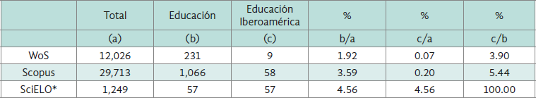 A pesar de que la base de datos Scopus y la regional SciELO (Scientific Electronic Library Online, en español: Biblioteca Científica Electrónica en Línea), han mejorado un poco la situación en términos de la participación de las revistas dedicadas a la investigación educativa en los países de Iberoamérica, cabe destacar que es un proceso reciente que se circunscribe a la última década.