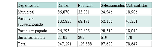 Espinoza, Oscar & González, Luis Eduardo (2007). “Perfil socioeconómico del estudiantado que accede a la educación superior en Chile (19902003)” en Revista Estudios Pedagógicos, vol. 33, núm. 2, pp. 45-57. Valdivia, Universidad Austral.
