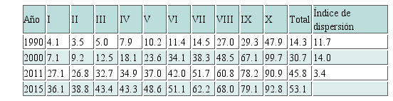 Si se utiliza un coeficiente de desigualdad, definido como la relación entre el porcentaje de alumnos de los quintiles I y II que asisten a una determinada universidad y la cantidad de aportes del Estado, se constata que las universidades más tradicionales, que reclutan a un alumnado de mayores ingresos, tienen mayor apoyo del Estado (Latorre, González y Espinoza, 2009).