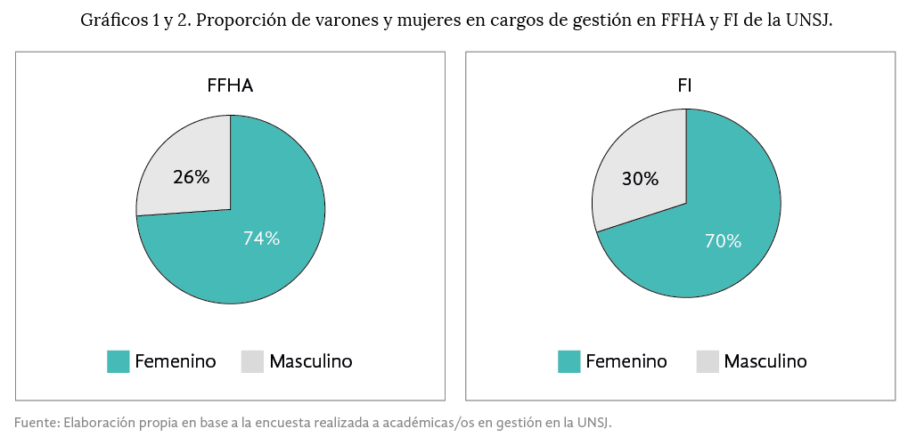 En cuanto a la unidad de análisis4 y a la población del estudio, cabe destacar que si bien trabajamos con el universo posible (78 casos), aquí nos circunscribimos a las personas que ocupan cargos de gestión académica durante el período 2016-2020 en la FI y la FFHA de la UNSJ (44 casos).