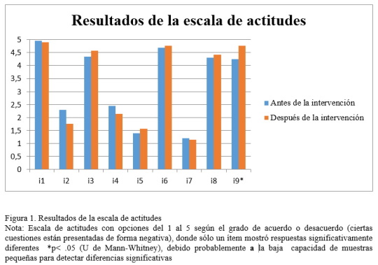 La escala utilizada, llamada Escala de Actitudes hacia la Educación Ambiental (ver anexo, Pérez-Rodríguez, Varela-Losada, Álvarez-Lires & Vega-Marcote, 2017), presenta una buena consistencia interna (α = .804, glb = .875 y Ω = .810) y proporciona información sobre las actitudes frente a un modelo educativo de la EAS de carácter transformador. La escala fue administrada de forma voluntaria antes y después de la intervención didáctica, siendo realizada por el 84% de las personas participantes. Los resultados de la escala fueron tratados con el programa SPSS versión 20 para Windows, utilizándose pruebas no paramétricas de significatividad.
