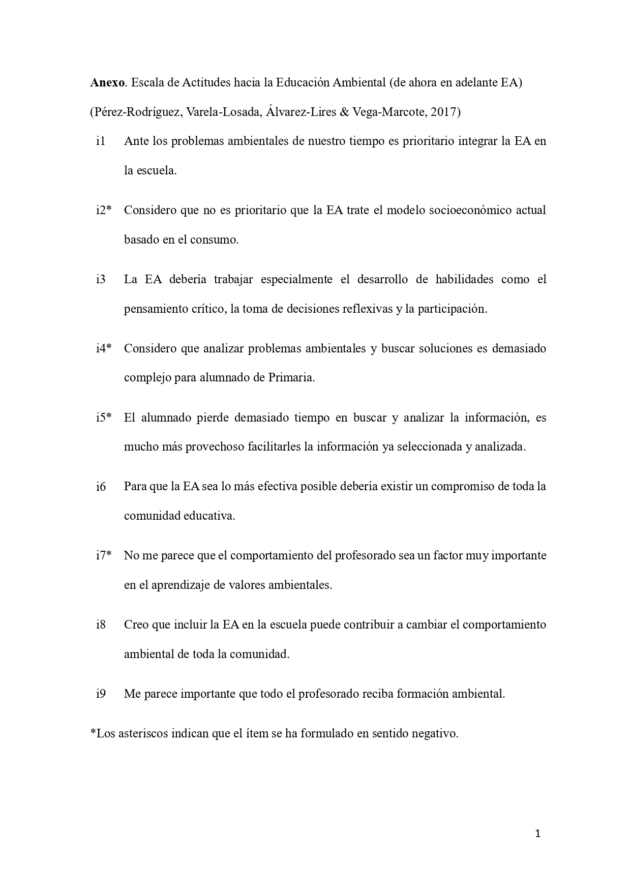 Pérez-Rodríguez, U., Varela-Losada, M., Álvarez-Lires, F. J., & Vega-Marcote, P. (2017). Attitudes of preservice teachers: Design and validation of an attitude scale toward environmental education. Journal of Cleaner Production, 164, 634-641. https://doi.org/10.1016/j.jclepro.2017.06.245