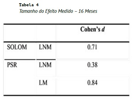 A avaliação final foi realizada ao fim de 16 meses de intervenção, tendo sido obtidos os seguintes resultados: