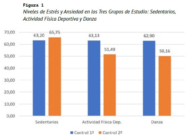 Con respecto a los niños sedentarios, son los que muestran el mayor incremento en los niveles de estrés y ansiedad, con un aumento de 2,55 puntos en la media del segundo test (ver Tabla 1). Este estudio nos facilita como investigadores de las artes y el deporte, en particular de la danza y la actividad física, en la identificación de las ventajas comparativas que esta tiene en la reducción de los niveles de ansiedad y estrés, y consecuentemente en la mejora de la calidad de vida y la salud, de los niños que practican estas disciplinas frente a aquellos sin actividades similares.