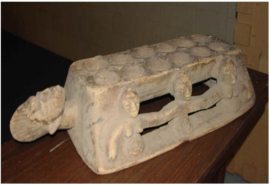 Para o povo Yorubá da Nigéria, o Ayoayo possui dois suportes figurativos criados em ambos os lados da tábua onde estão representadas as covas que são feitas no chão; este suporte simboliza os valores culturais (ver Figura 3). Há uma figura masculina entre duas figuras femininas em cada lado simbolizando os relacionamentos, que são uma parte importante de sua cultura. “Para os Yorubás, a vida é um agregado de relacionamentos - relacionamentos com outras pessoas, com a natureza, com doenças e morte, e com o próprio passado e o destino pessoal. Os relacionamentos nunca são estáticos” (Fagg & Pemberton, p. 164, como citado em O'Connell, 2004, p. 1) e o Ayoayo é um instrumento que carrega consigo estes valores.