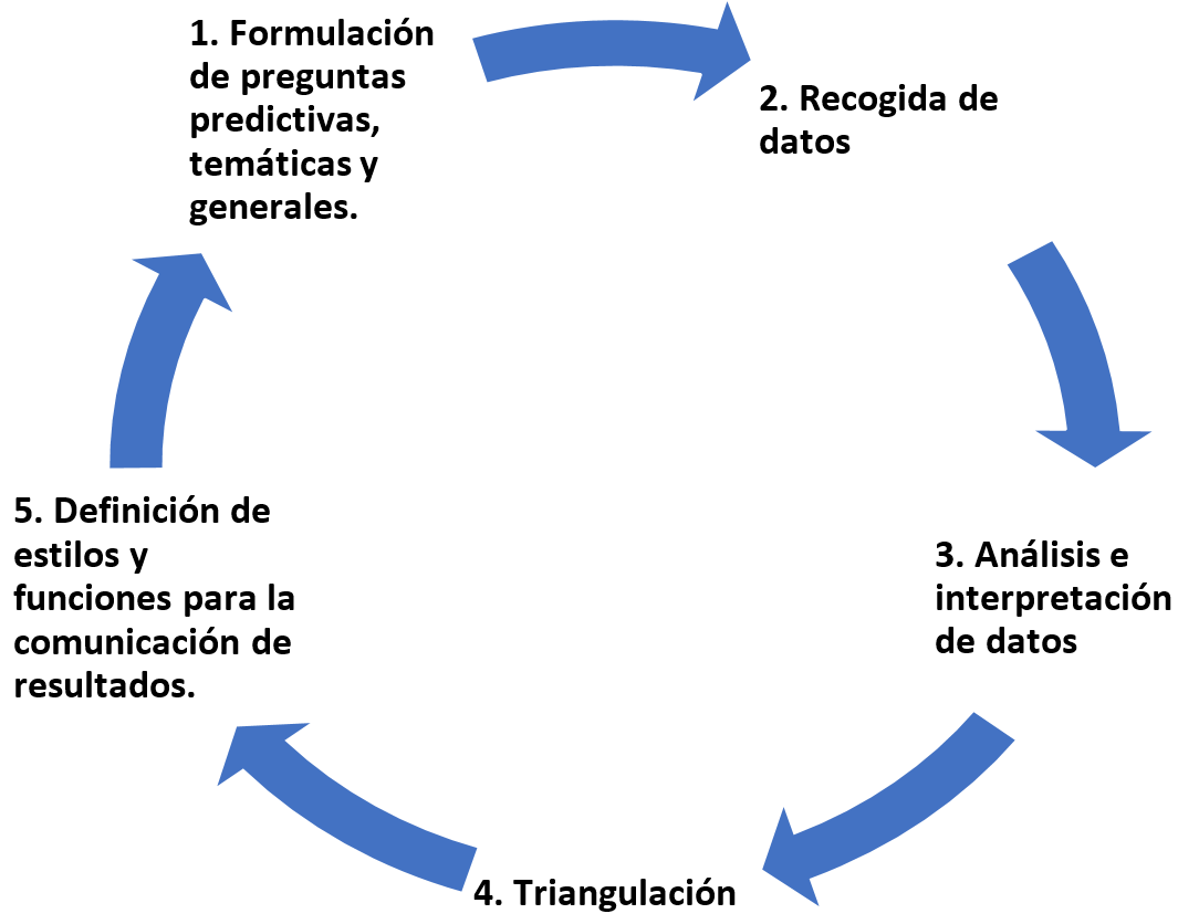 El proceso de recolección y análisis de datos (ver figura 1), está determinado por los lineamientos propios del Estudio de Casos más los aportes realizados por Young (1939), Good & Hatt (1976), Becker (1979), Runkel (1990), Hamel (1992), Arzaluz (2005) y, principalmente, Stake (1994; 1999), quien propone diferentes tipos de maneras de encarar estos estudios. Particularmente, se optó por un diseño instrumental en la medida en que este caso sirve como instrumento para entender o comprender una situación paradójica o una necesidad de comprensión general (Stake, 1994).