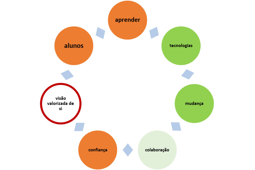 Desenvolver, aprofundar e enriquecer os saberes relacionados com o uso das novas tecnologias prende-se, para grande parte dos professores participantes no projeto, com a necessidade de se sentirem seguros e confiantes no seu uso e, por outro lado, de valorizarem a sua profissão: “Tenho necessidade de continuar a aprender, para me sentir mais segura em desafios futuros com os meus alunos” (Anastácia); “Foi uma formação enriquecedora que aumentou a minha confiança e habilidade para a integração das novas tecnologias na aprendizagem” (Elsa).
