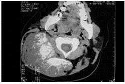 Se trató de paciente femenina de 25 años de edad quien inició enfermedad actual en el año 2007, presentando aumento de volumen y dolor de leve intensidad en región de la nuca. Paciente asintomática con tumor palpable de aproximadamente 10 cm x 10 cm, en base del cráneo extendiéndose a región latero-cervical derecha (Figura. 1).