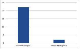 En nuestra experiencia, la mayoría de los pacientes tuvieron un grado de diferenciación histológica bajo (91,6 %) al compararlo con el grado histológico alto (8,4 %) (4).