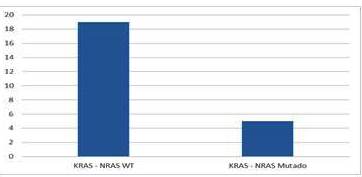 Al contrario de lo plasmado en la literatura, la frecuencia de mutaciones en los genes KRAS y NRAS sobrepasa el 50 % en algunas publicaciones, en nuestra experiencia la presencia de mutaciones fue de 20,83 % para el gen KRAS y apenas 4,2 % para el gen NRAS (18). Estos datos son más comparables con lo obtenido por Estrada y col., (19) donde se registró una frecuencia de la mutación en población venezolana de 23,33 %.
