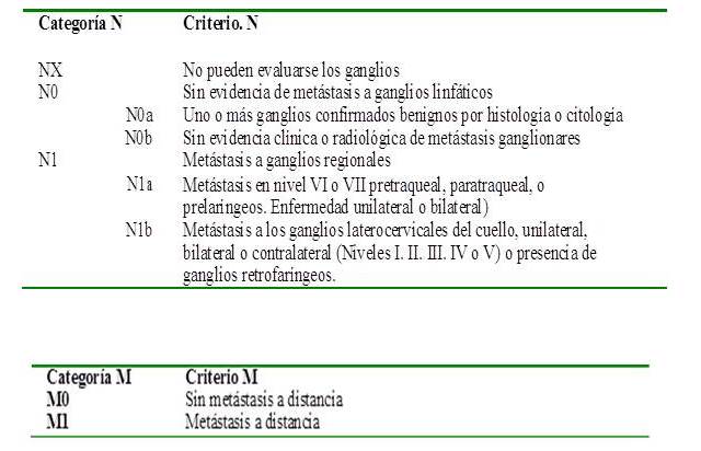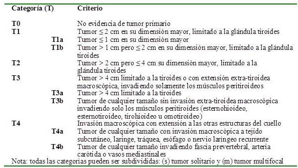 Es importante acotar que las reglas de estadificación no se aplican a los carcinomas que se originan en quistes del conducto tirogloso u otros sitios ectópicos (ovario). Deben diferenciarse también del carcinoma medular, que se origina de las células para-foliculares.
