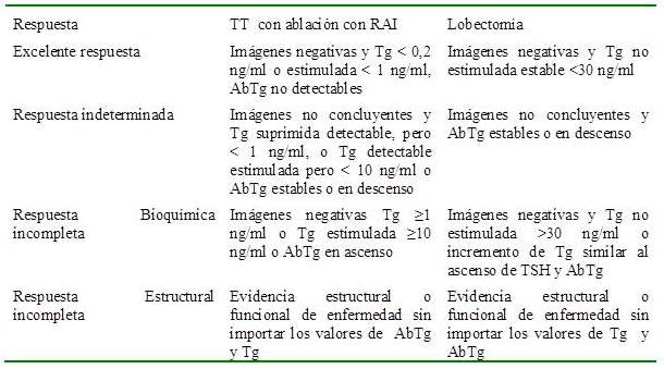 Las herramientas en el tratamiento para el CDT son: la cirugía que es el pilar fundamental, el tratamiento con hormona tiroidea para suprimir el TSH y yodo radiactivo 131I (13).