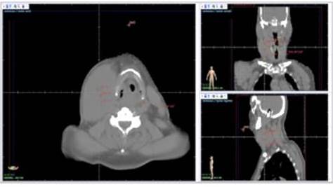 Durante los controles semanales intra-tratamiento, se constata una modificación del volumen blanco, por lo cual se decide realizar otra tomografía de simulación para elaborar un nuevo plan de RT adaptativa (18).