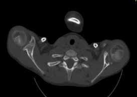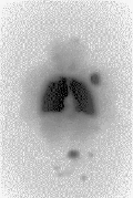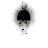 Para abril del presente año se administra una segunda dosis terapéutica de 50 mCi de 131I y el RCT realizado una semana posterior al tratamiento (Figura 9 y 10) concluye: remanente en lecho tiroideo y compromiso ganglionar latero cervical bilateral a predominio del lado derecho, de menor intensidad comparado con el estudio previo; enfermedad metastásica bilateral con alta avidez por el RAI; compromiso secundario óseo en sitios descritos, de menor intensidad en comparación al rastreo previo, al igual que probable compromiso secundario renal. Es evaluado posteriormente por el servicio de endocrinología donde deciden aumentar la dosis de levotiroxina a 125 mcg VO OD. El paciente queda planificado para recibir una nueva dosis de RAI aproximadamente para octubre del presente año, clínicamente se encuentra asintomático y continúa con su rutina diaria con normalidad.