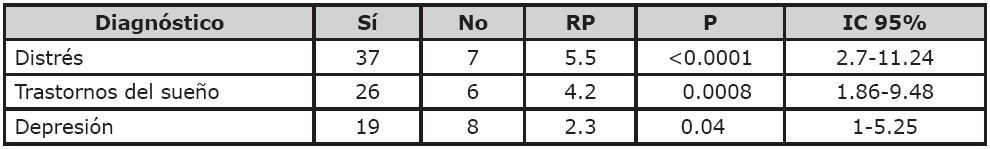 En el mismo tenor, quienes prolongan su jornada laboral, por el mismo motivo, es decir por la sobrecarga de trabajo, están presentando hasta cinco veces más distrés, cuatro veces más trastornos del sueño y una depresión duplicada. Las asociaciones se encuentran asociadas estadísticamente, como puede observarse en la Tabla N° 6 .