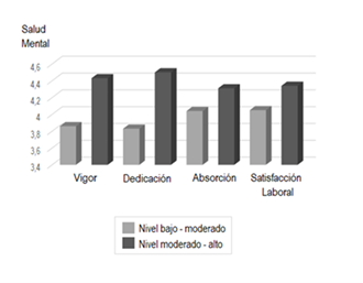 Como puede observarse en la Tabla 5, tanto el engagement como la satisfacción laboral parecieran relacionarse significativamente con los niveles reportados de salud mental y física.